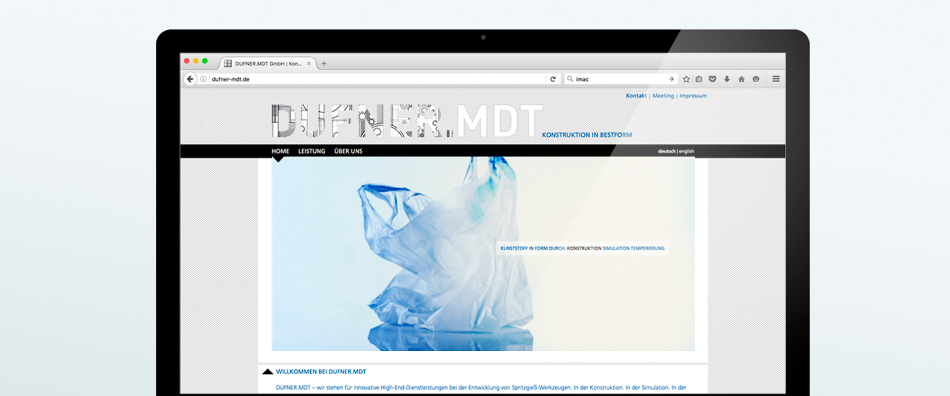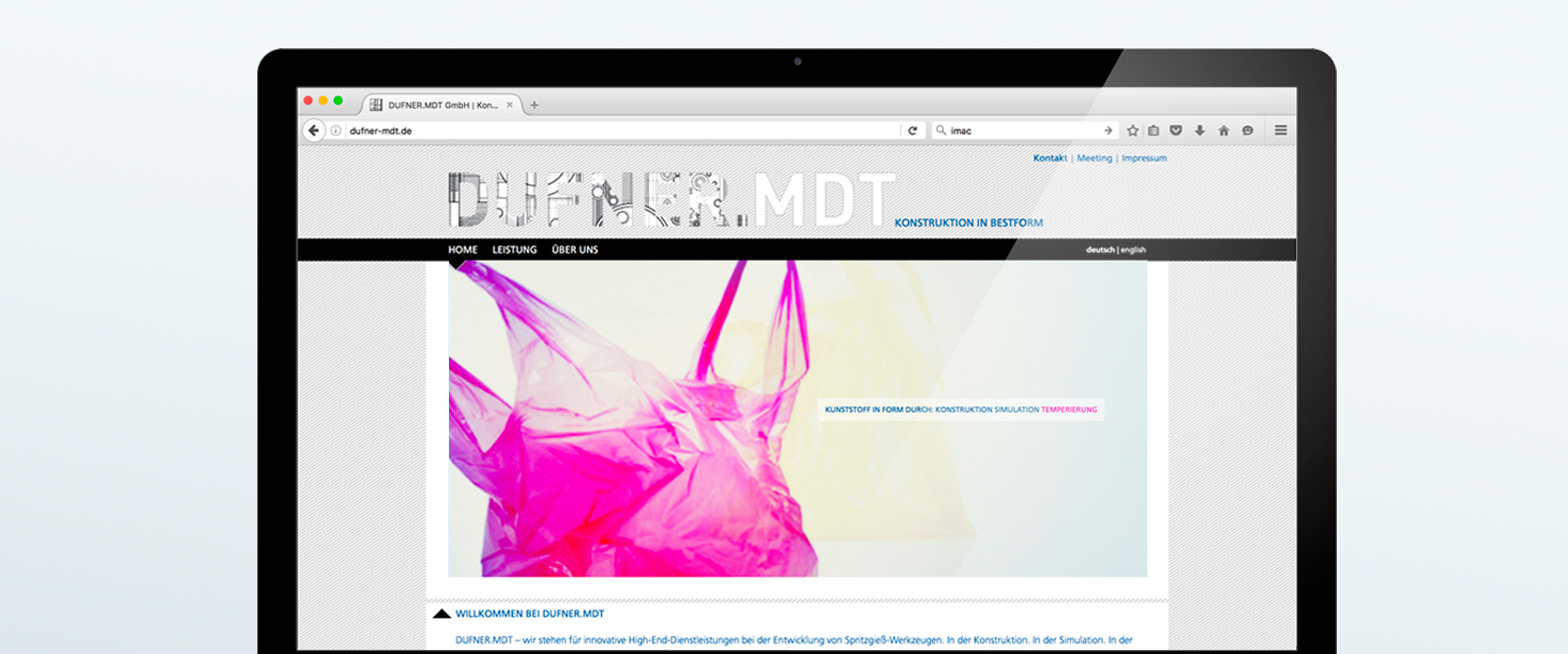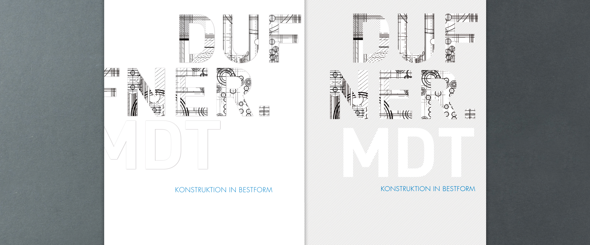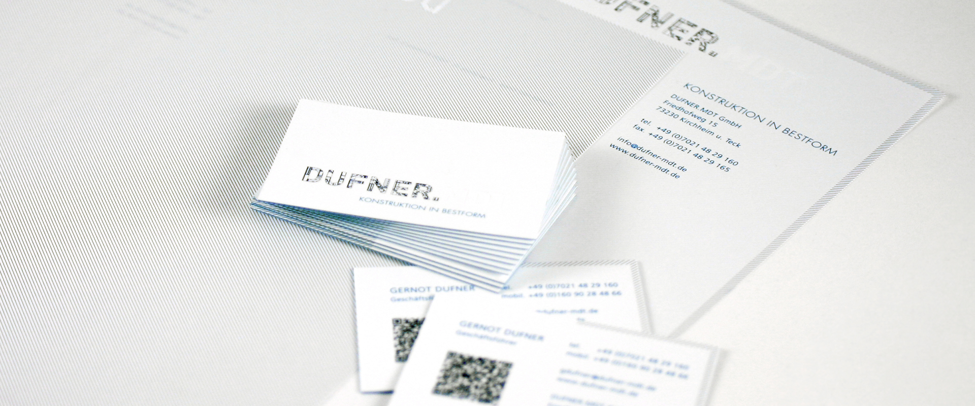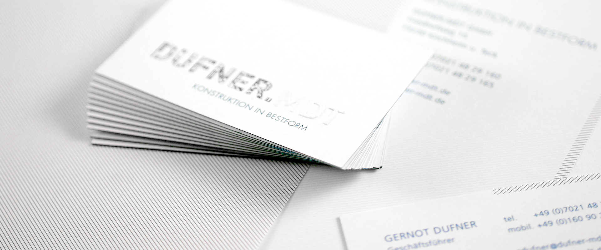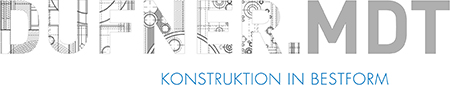Entwicklung eines Corporate Designs für Dufner.MDT, ein Konstruktionsbüro für die Herstellung von High-End Spritzgießwerkzeugen. Visitenkarten, Briefbögen und Webseite.