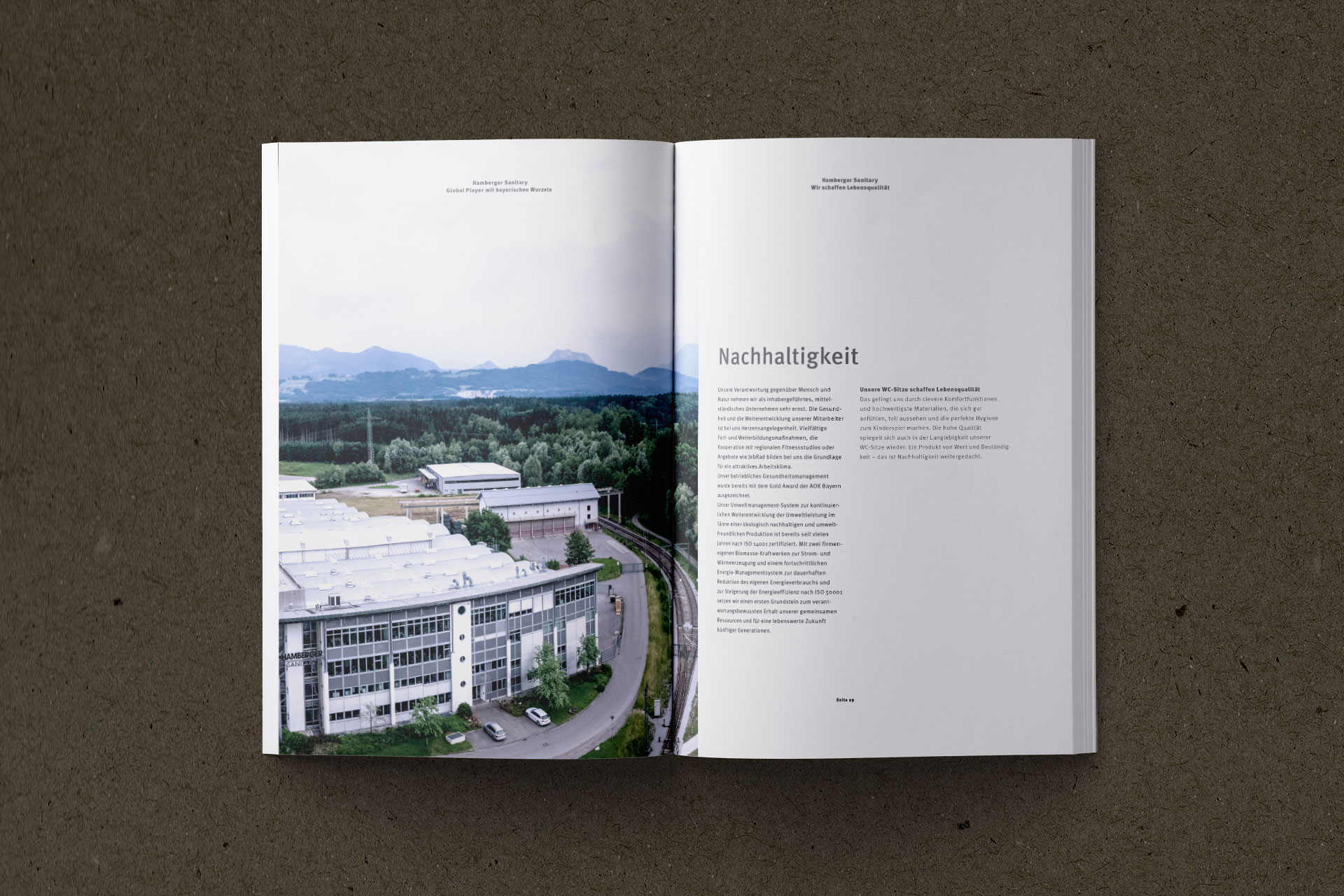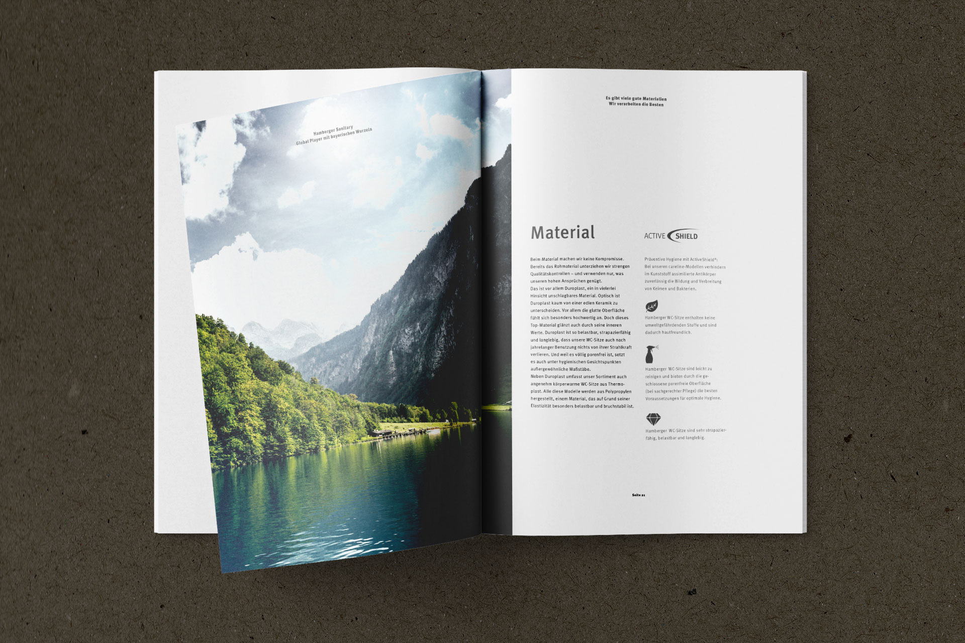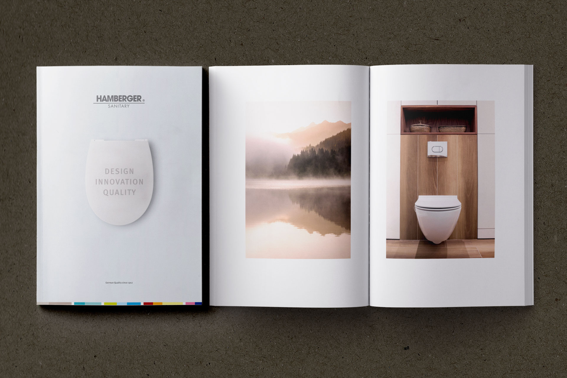 Genau diese Zen-Stimmung bildet die Grundlage der neuen Imagebrochüre von Hamberger Sanitary. Symmetrie im Design strahlt Ruhe aus, die kraftvolle Naturpanoramen aus Wasser (Reinheit) und Fels (Stärke und Verlässlichkeit) laden die Leser zum Durchatmen ein.