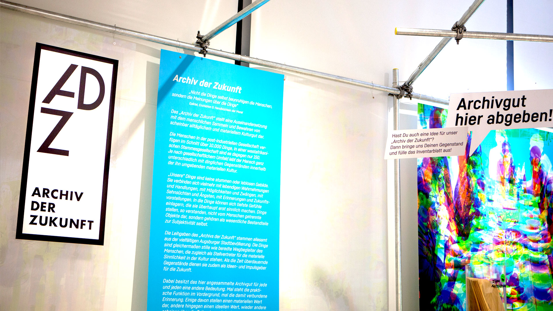 Nach dem Erfolg der #Selfie-Ausstellung wollte das tim eine weitere Ausstellung mit partizipativer Beteiligung zusammenstellen, diesmal nur größer. Wie schon bei #Selfie wurden wir als Kreativcoach hinzugezogen, diesmal für die Workshops im Bereich »Kultur«. Diese Aufgabe beinhaltete die Zusammenstellung der Workshopinhalte in Zusammenarbeit mit Barbara Kolb (tim) sowie die visuelle Betreuung und Aufbereitung der Workshops. Außerdem erarbeiteten wir das Ausstellungskonzept für den Bereich »Kultur«, das »Archiv der Zukunft«. Dabei waren wir insbesondere für das Branding, die gestalterischen Parameter sowie das Design der Objekt-Zylinder verantwortlich.